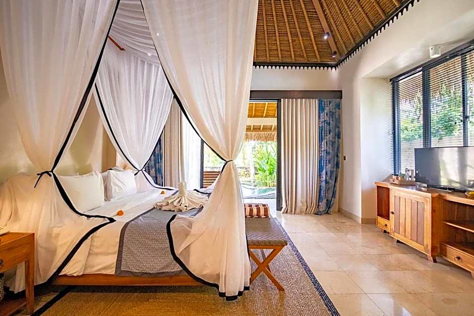 Two Bedroom Rice Terrace Pool Villa The largest accommodations type 2-Bedroom Rice Terrace Pool Villa comes with spacious size of 200 sqm, including a plunge pool suitable for families or friends looking for quality time. 2 units of this thatched roof and modern Balinese interior design will bring you to the comfort of the Balinese verdant environment.